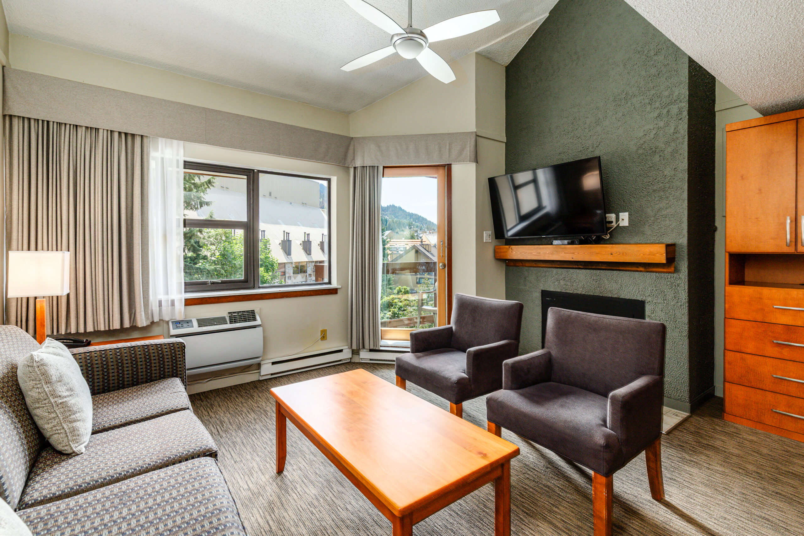 Rustic and inviting, with an authentic mountain resort feel, Whistler Village Inn + Suites offers a selection of 88 guestrooms spread across two buildings, The Keg Building and The Powder Lodge. Choose from standard rooms, lofts, studios and suites, all with complimentary WiFi and HD TVs. Many also include features such as cozy fireplaces, kitchenettes or fully equipped kitchens.
