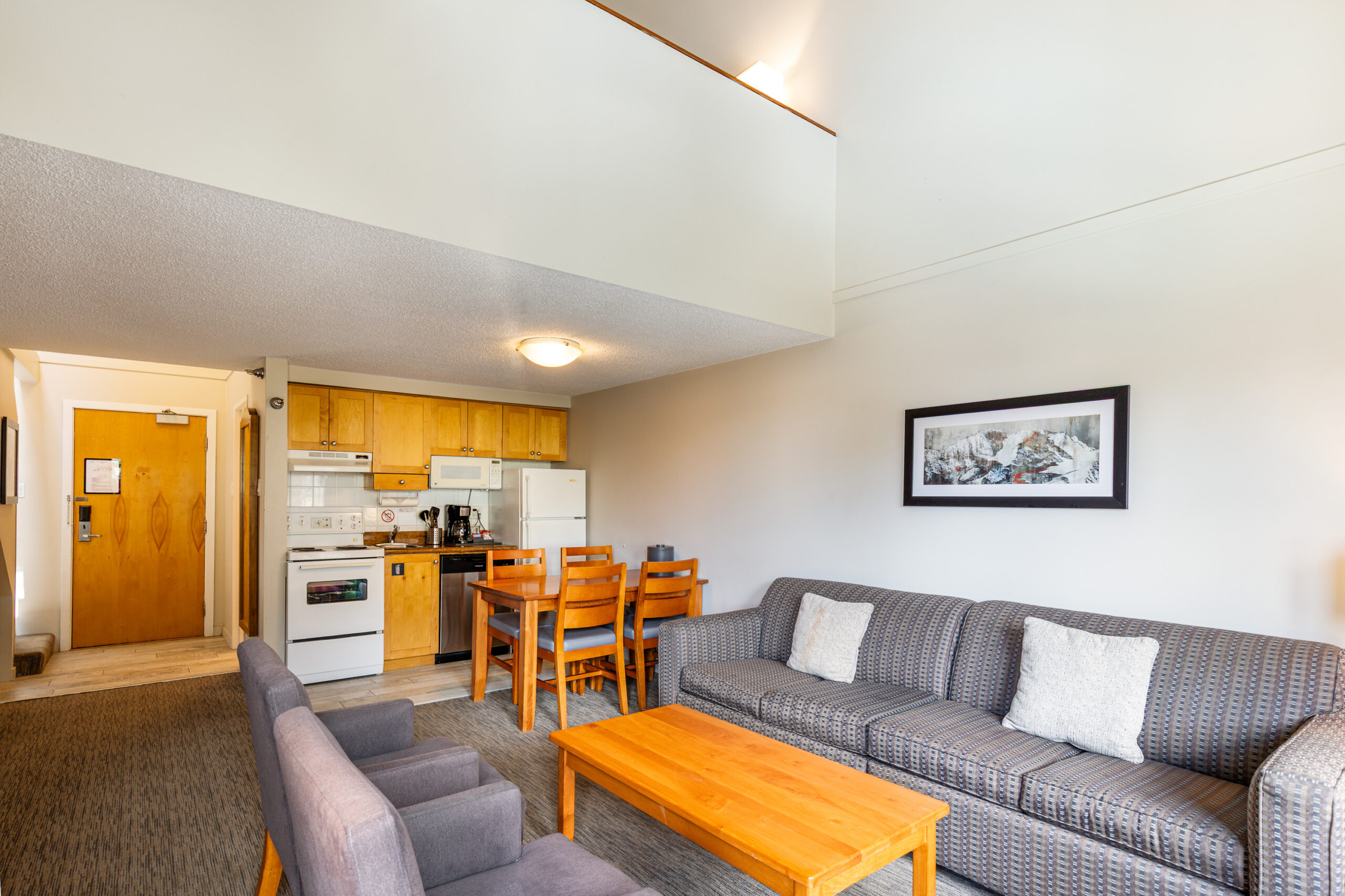 Deluxe Loft Studio on the top floor of the Keg Lodge, this spacious unit offers mountain views, vaulted ceilings, and a bright open-plan layout. It offers a generous loft, comfortable living area, a full kitchen, cozy fireplace, and comfortable sleeping arrangements for up to 6 guests. Enjoy the best of village life and mountain adventure right at your doorstep – just steps to the Whistler and Blackcomb gondolas, plus all the shops, restaurants, and après spots that make Whistler so special.