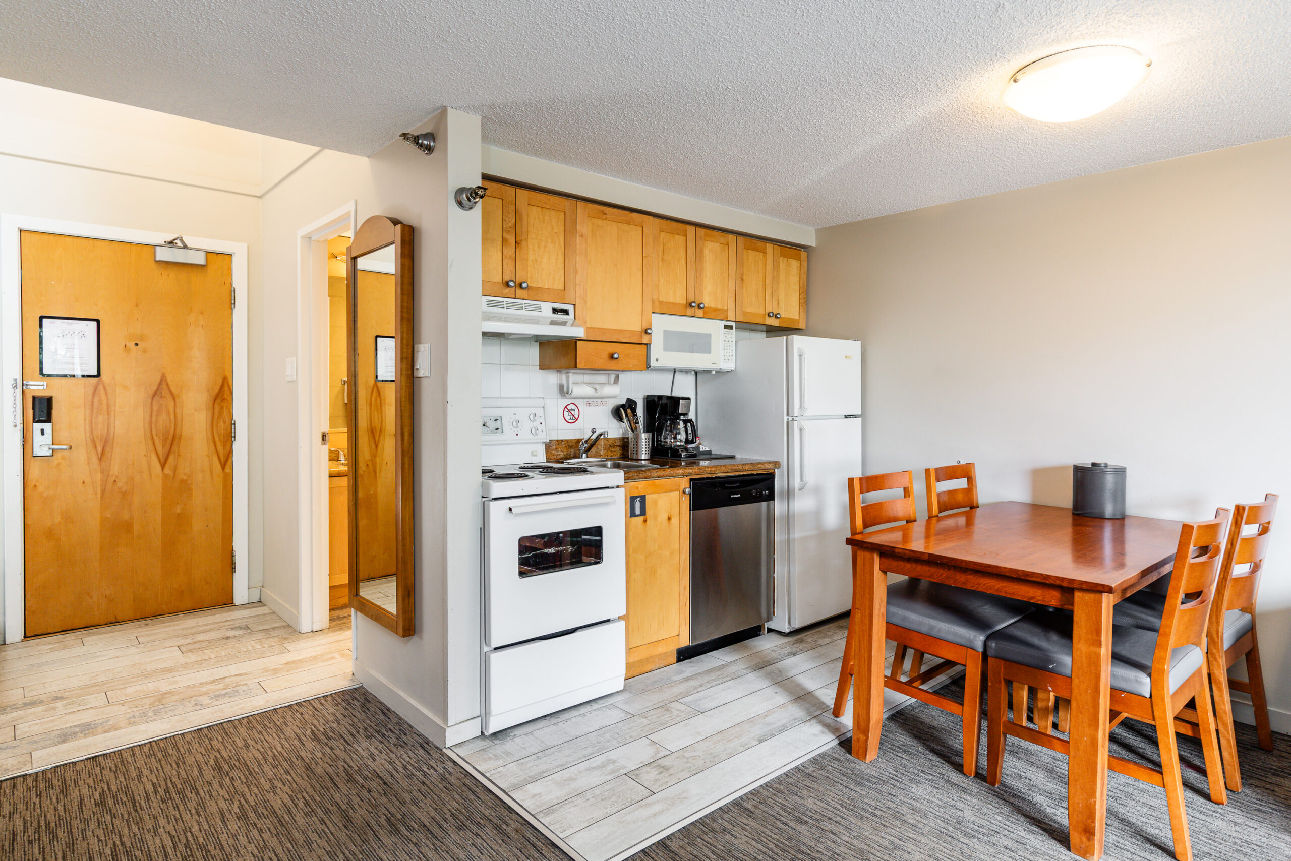 This suite is located in the Whistler Village Inn & Suites. The Phase 2 covenant on title allows the owner to use the suite for up to 28 days in the summer season and 28 days in the winter season. The remainder of the time the bookings are managed by the hotel and owners share in the revenue. (Individual nightly rentals like Airbnb, etc are not allowed.)